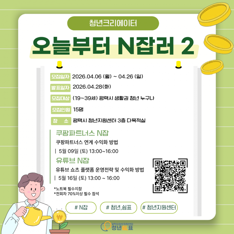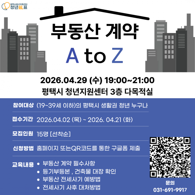 문의사항: 031-691-9917 (평택시 청년지원센터 청년쉼,표)
