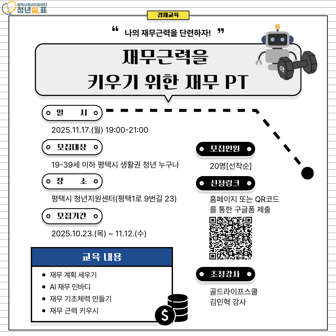 2025 평택시 청년지원센터 [경제교육-재무 근력을 키우기 위한 재무 PT] 신청자 모집