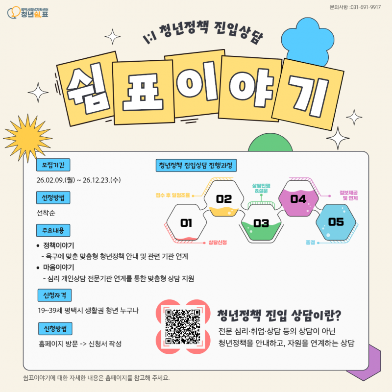 문의사항: 031-691-9917 (평택시 청년지원센터 청년쉼,표)